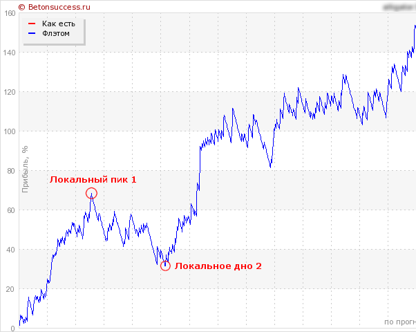 Ч.А.В.О. » Что такое просадка и как она рассчитывается?Если вкратце, то просадка это максимальная сумма в процентах банкролла, на которую может упасть клиент, если подпишется на локальном пике прибыли рассылки. Проще всего это проиллюстрировать на примере с графиком: ![]() В данном примере просадка это "расстояние" по вертикали от Локального пика 1 до Локального дна 2, и составляет примерно 36%. Как это выглядит в реальности? Предположим клиент купил пакет прогнозов в тот самый момент когда рассылка достигла прибыли на уровне Локального пика 1. И тут же начал ставить все прогнозы каппера причем прямо с теми же процентами от своего банкролла что рекомендует каппер. Предположим клиент начал с банком в 1000 долларов. В этом случае в какой то момент клиент обнаруживает что он потерял 360 долларов в момент Локального дна 2. Это и есть просадка. Да, понятно что потом рассылка пойдет вверх и заработает ещё. Но здесь и сейчас клиент потерял 360 долларов из 1000. И если историческая просадка рассылки равна 90%, значит клиент рискует в какой то момент потерять 900 долларов из 1000. Фактически обанкротиться. И следовательно клиент понимает что все проценты с которыми рекомендует ставить каппер нужно понизить минимум втрое. И расчетную прибыль тоже. Чтобы не терять больше 300 долларов из 1000 в пике. Мы часто встречаем логику ну как же так, мол де рассылка заработала 150% (200, 500, 1000%), а потом упала на 90%, это мол не просадка потому что прибыль 1000%. Поймите, клиенту сугубо наплевать на Ваши проценты которые были в рассылке раньше. Ему важно только здесь и сейчас. И если Ваша рассылка в принципе способна в какой то произвольный момент падать на 90% от банкролла, а подписчик войдет именно в этот момент, ему Ваши предыдущие 1000% прибыли будут глубоко неинтересны. Он получит только фактический слив своего банкролла на 90%, что де-факто банкротство. Поэтому при просадке выше определенного порога мы понижаем рассылку в статусе, а после превышения просадки на 100% - закрываем рассылку. *** Как рассчитывается просадка с точки зрения формальной логики и программирования?